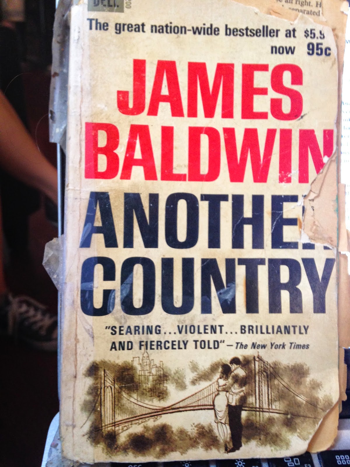 I also remember her asking me if I’d read Another Country at the time and being embarrassed to say no, though my guilty student self may have invented that piece. I read Go Tell it on the Mountain and Giovanni’s Room sometime in college. I think I read Giovanni’s Room in preparation for my college year in France, knowing it was about ex-pats. I haven’t read it since and I don’t remember a lot of the plot, but I remember being devastated by it. I remember that the pages of the old paperback I’d found at my parents or grandparent’s house fell apart as I read it, and how I tried to put them back together with scotch tape. When, after one move too many moves, I accepted that this particular copy had given up the ghost, I tore out a few pages and taped them on my dresser, the way writers do for inspiration, even though I never actually wrote at that desk.